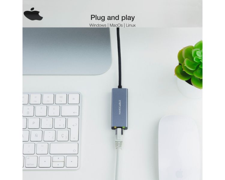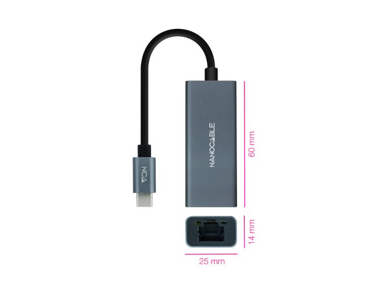 CONVERSOR USB-C A ETHERNET GIGABIT 10/100/1000 15cm GRIS NANOCABLE