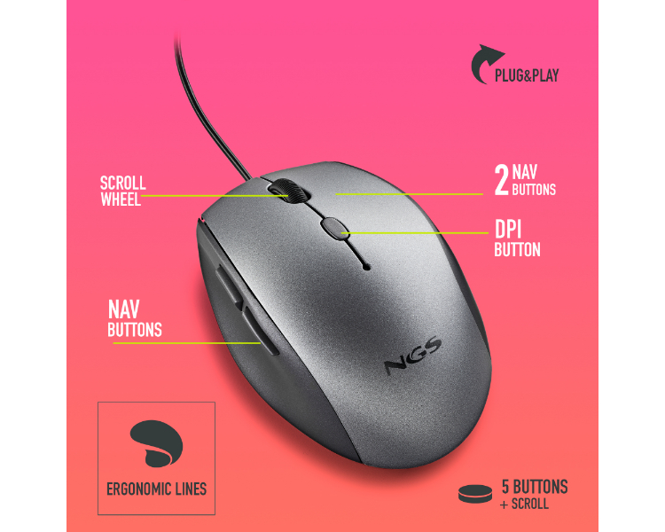 RATON OPTICO MOTH GRIS NGS